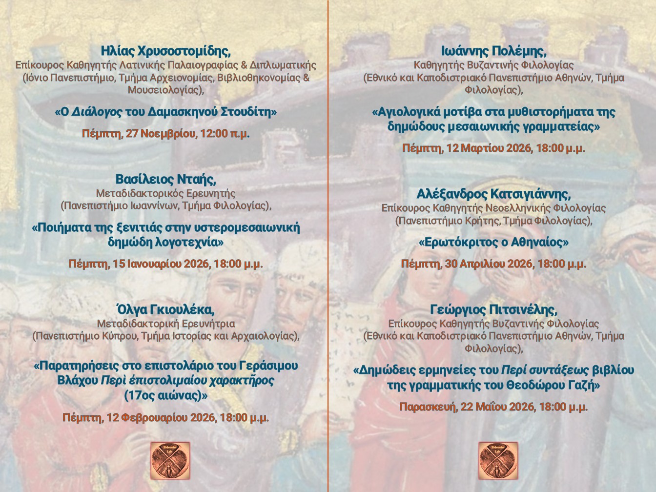 B΄ Κύκλος διαδικτυακών διαλέξεων για τη Βυζαντινή Δημώδη και Πρώιμη Νεοελληνική Γραμματεία